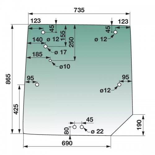 STEKLO KABINE ZADNJE MF 6170 LEVI BRISAL