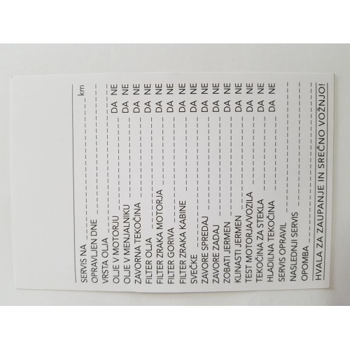 • SERVISNI LIST - KARTONČEK ZA SERVIS