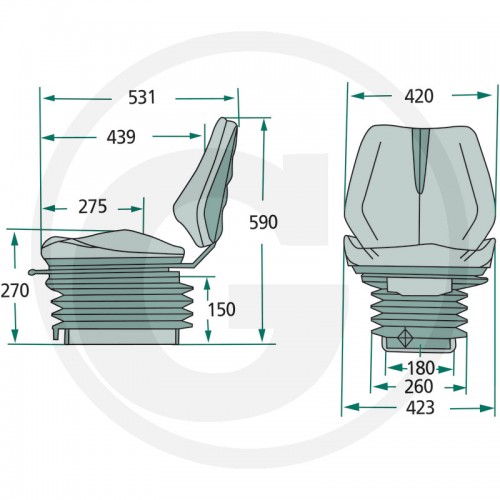 | Sistemski opis | SEDEŽ TRAKTORSKI BLAGO ZA OZKE TRAKTORJE 24000023, 50-120kg, Hod vzmeti 100mm |