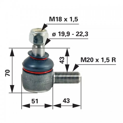 KONČNIK VOLANA navoj desni M20x1.5mm K20