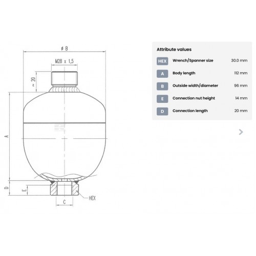 Sistemski opis BUČKA AKUMULATOR OLJA 0,35L MAX. 250bar WA21020351OFDA30