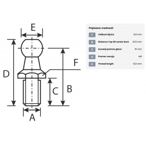 | Sistemski opis | BUČKA AMORTIZERJA ZGLOBA PLINA M6 fi=10 ca7180310 |