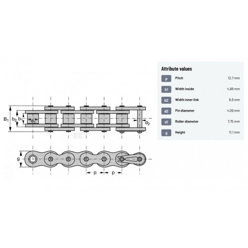 | Sistemski opis | VERIGA GALOVA 1/2" DIN084 REXNORD KE12084 |